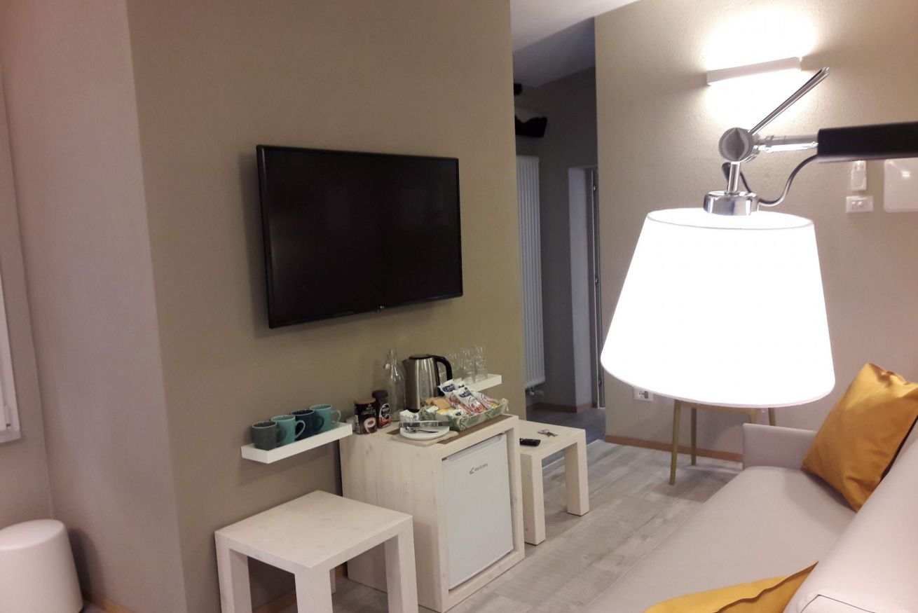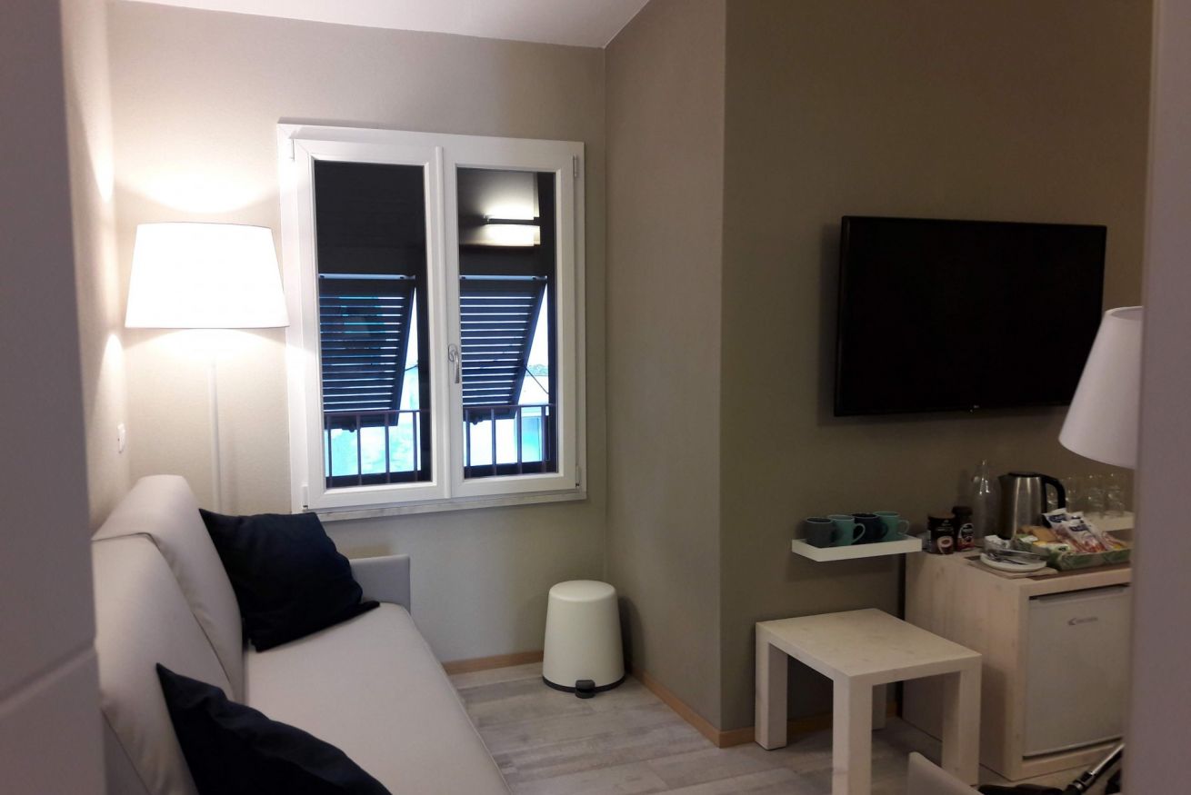 Rinnovata con finiture moderne e raffinate è dotata di aria condizionata, riscaldamento, mini frigorifero, finestre insonorizzate, wi-fi gratuito, televisione satellitare, biancheria letto, coperte, biancheria bagno, tazze, bicchieri, bollitore elettrico e zona attrezzata per tè e caffè.